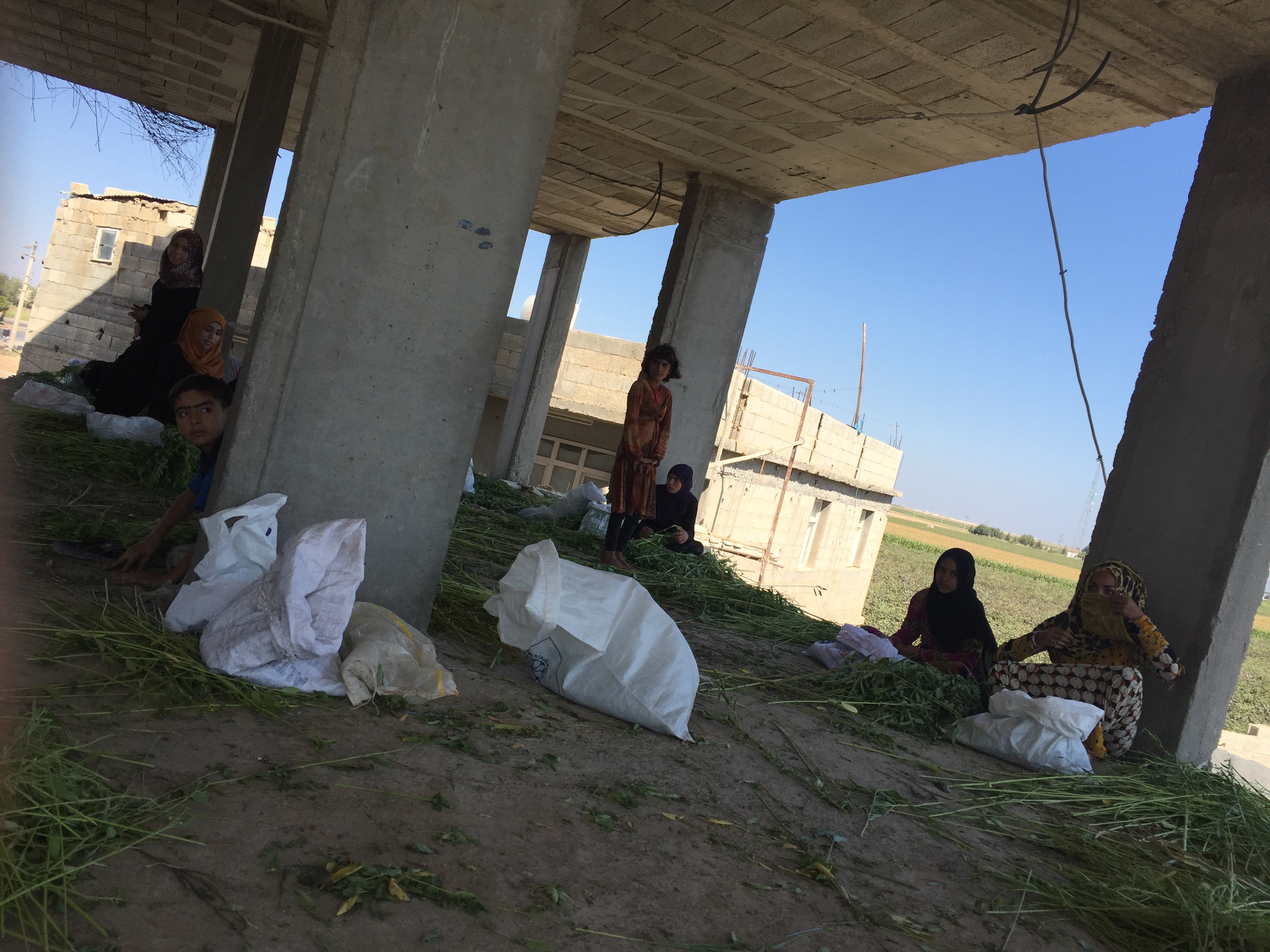 #Houda and #Hayet both have an academic degree and used to be teachers in their hometown, since months they live in a refugees camp in turkey fleeing the ISIS and the regime bombs spending the day in an under-construction building – stripping the molokhia leaves from their stems in the same way; but not in the same pace how they were stripped from their lives, plans and dreams – for 1,2 or 3 Turkish lira the day, depends on the generosity mood of the boss. exhausted and frustrated, fed up of officials coming to them, taking photos hearing their stories promising to come soon back with help, solution and support… and disappearing forever…